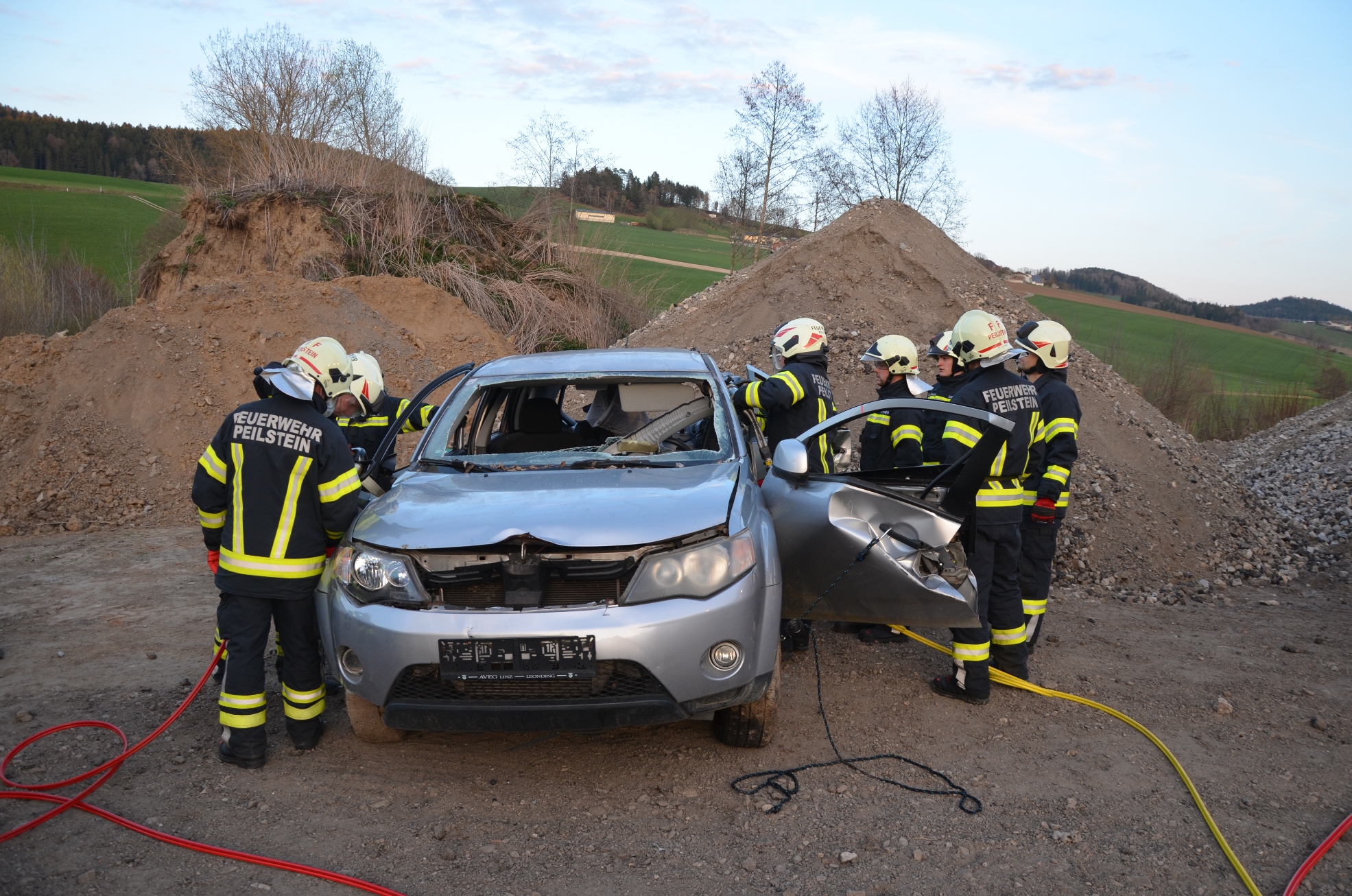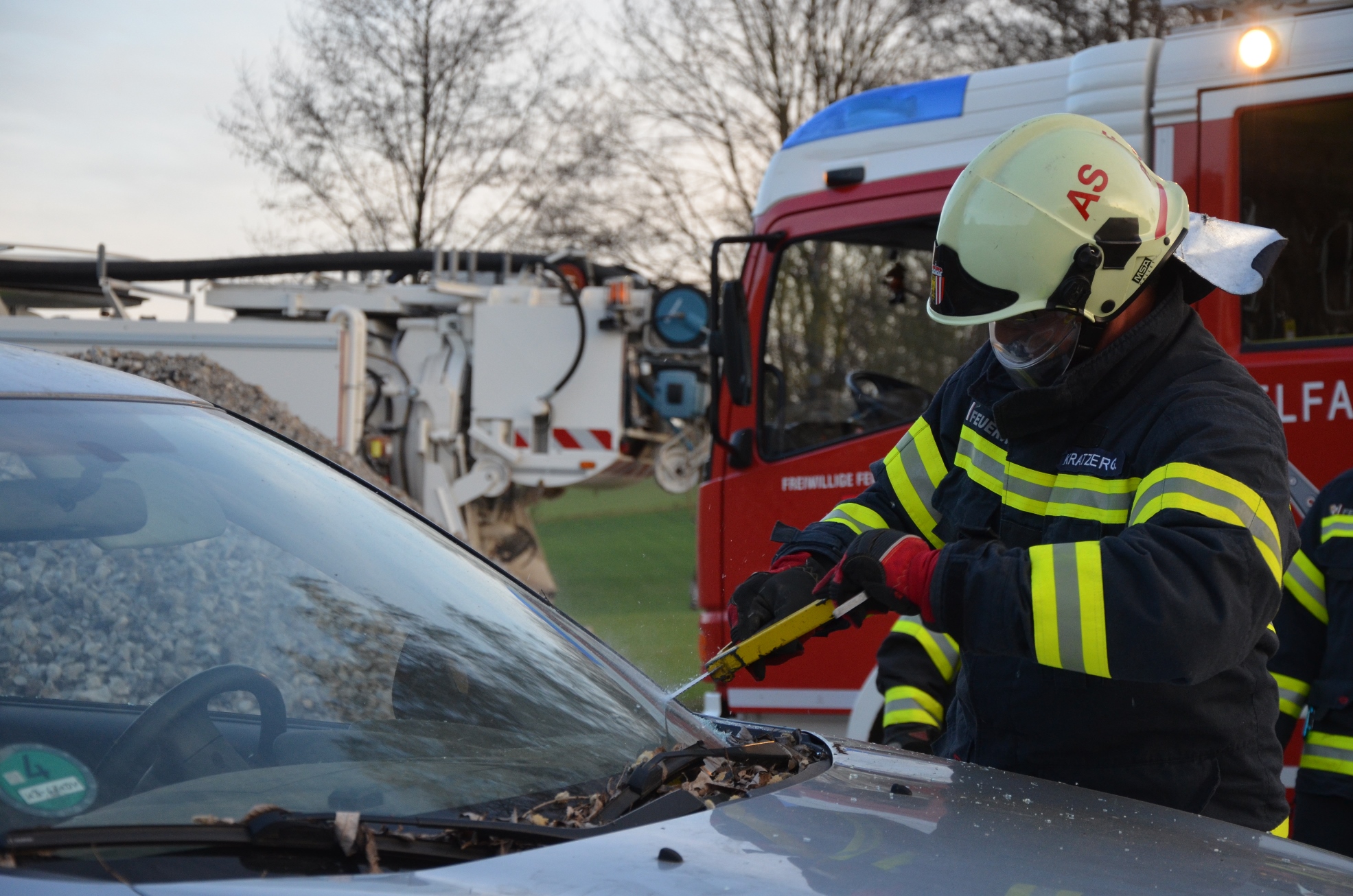 Im April wurde das Schwerpunktthema „THL-technische Hilfeleistung“ der vorangegangenen Monatsübungen weiter vertieft und um den Übungsteil Fahrzeugbrand erweitert. Nach der Vertiefung der unterschiedlichen Öffnungsmöglichkeiten, um eine verunfallte Person aus einem PKW zu bergen, galt es im Einsatzmodus das brennende Fahrzeug zu löschen.