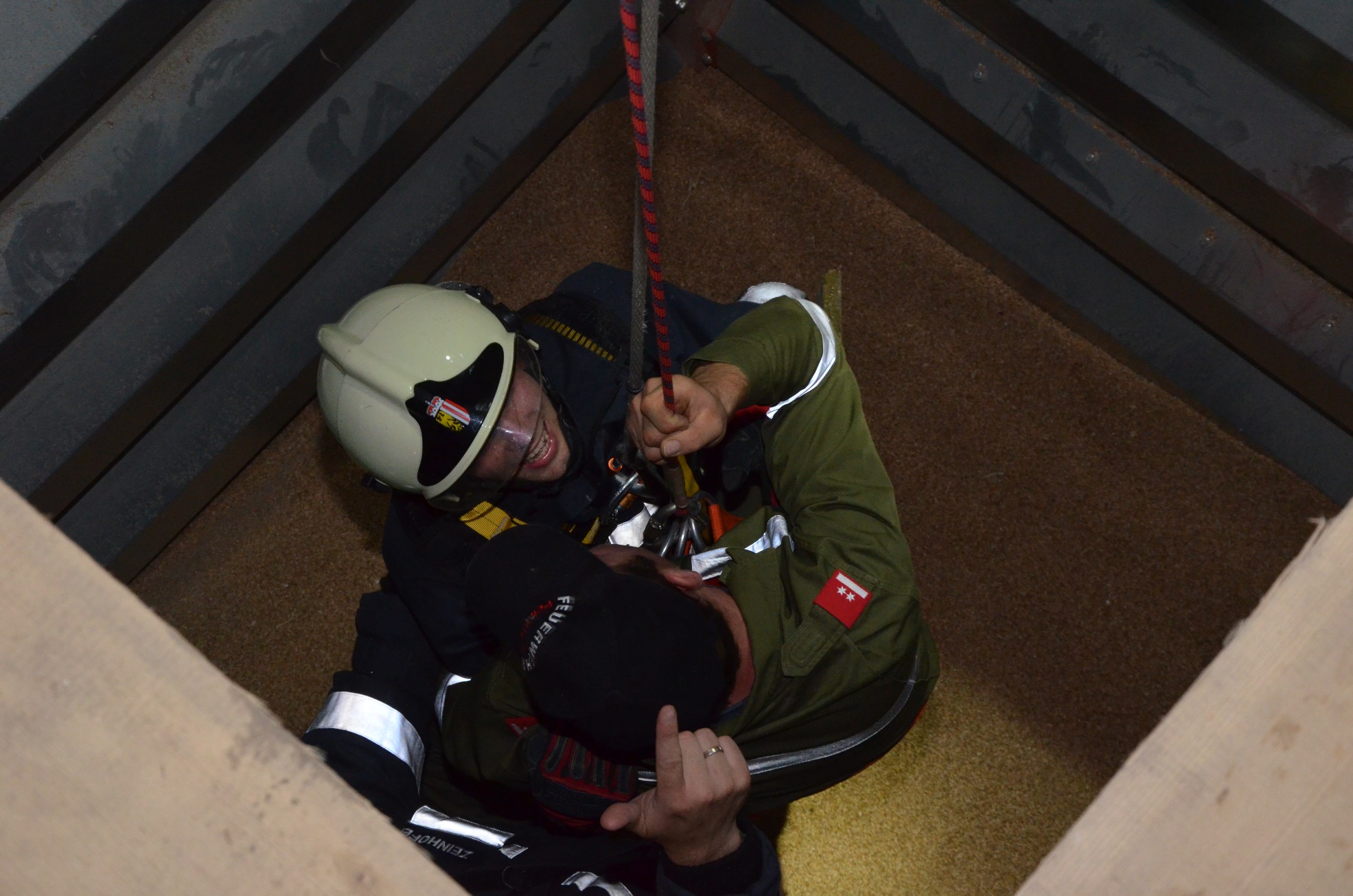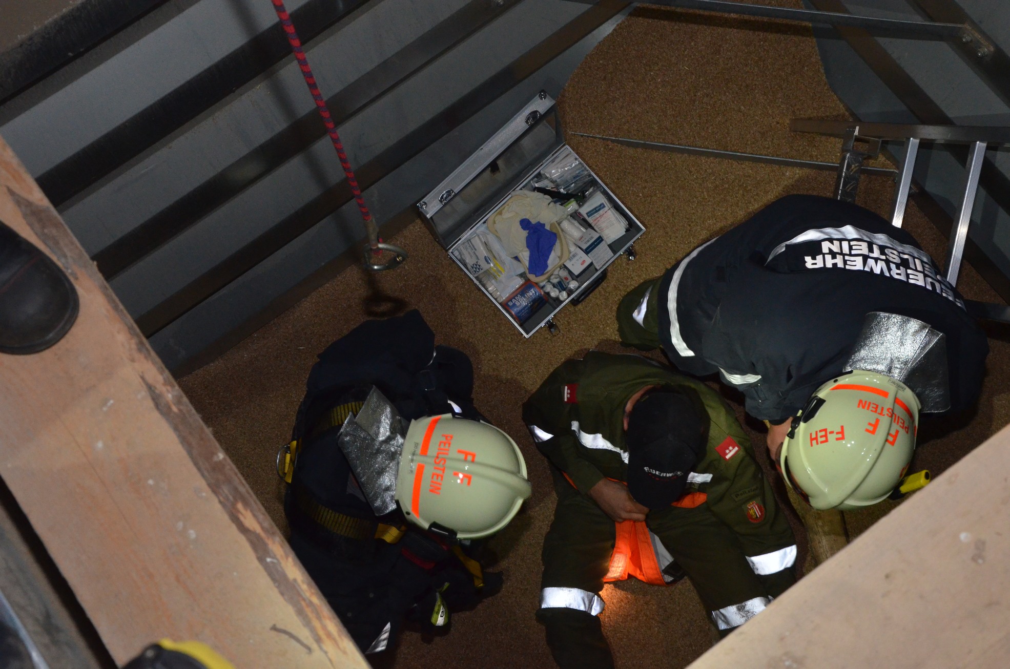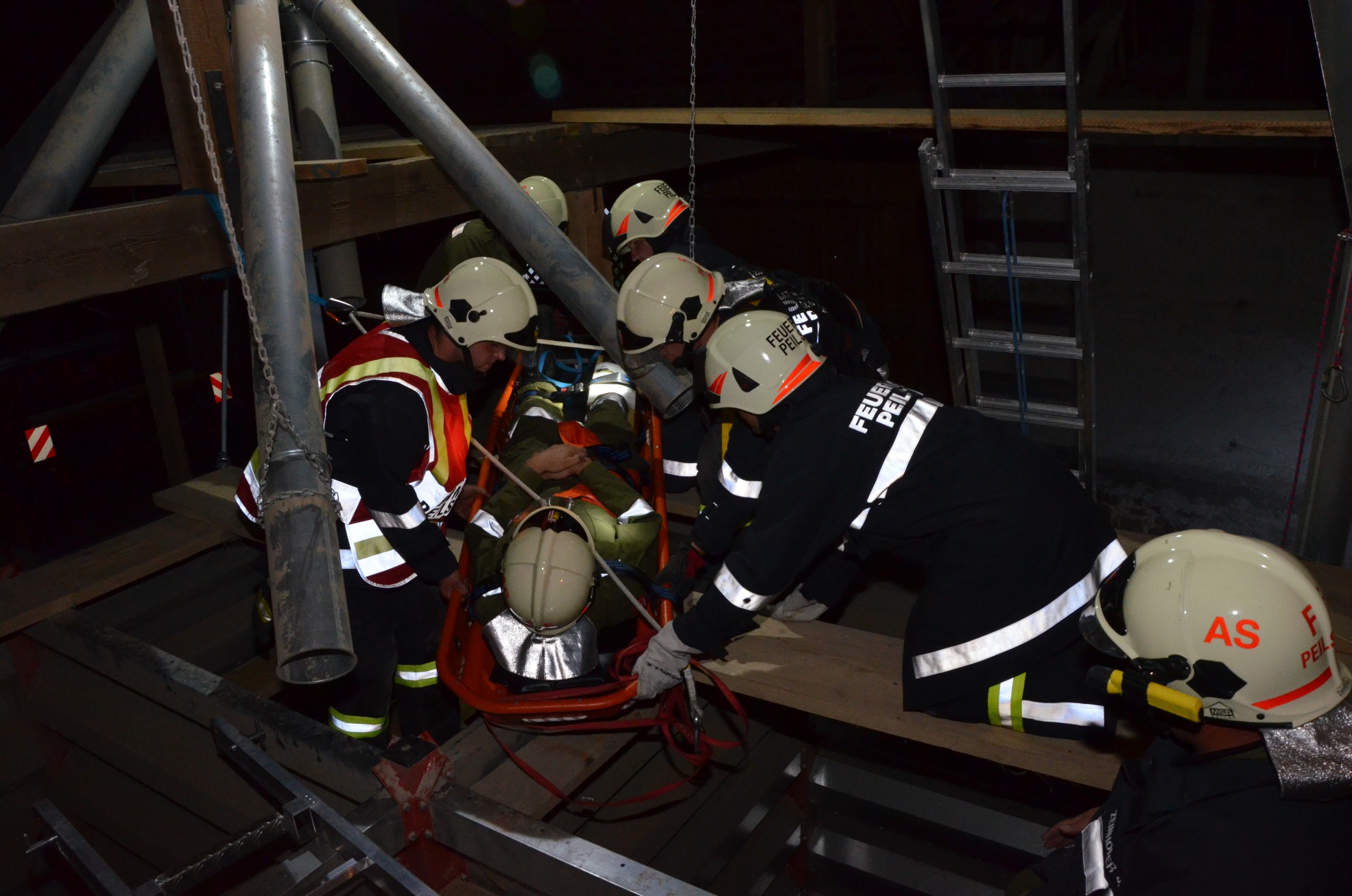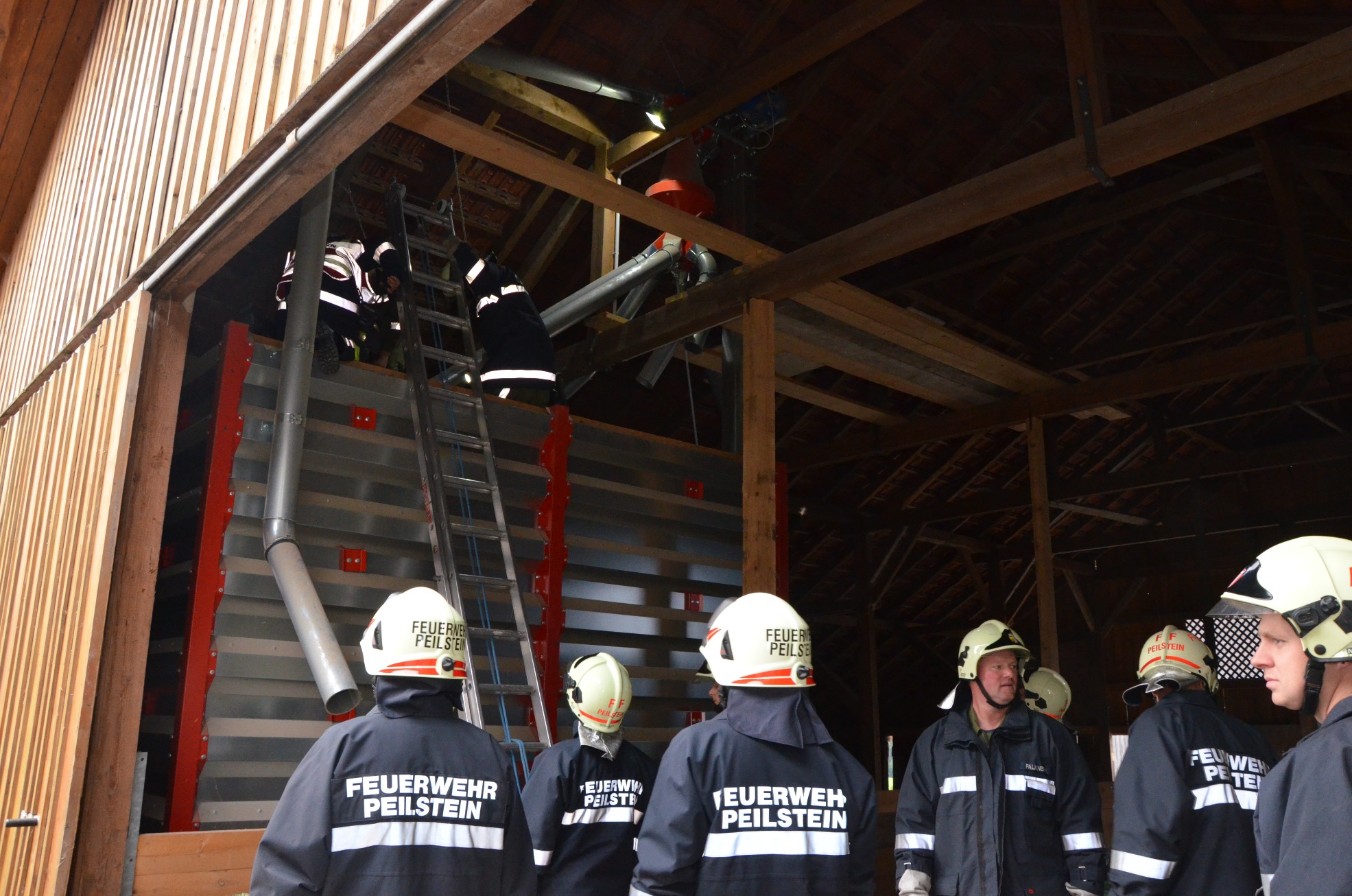 Bei der heurigen Zugsübung im Sommer wurde den Kameraden der Freiwilligen Feuerwehr Peilstein eine spezielle Aufgabe gestellt: Ein Bauer ist ca. 4 Meter tief in einen Getreidesilo gestürzt und hat sich dabei einen Fuß gebrochen.