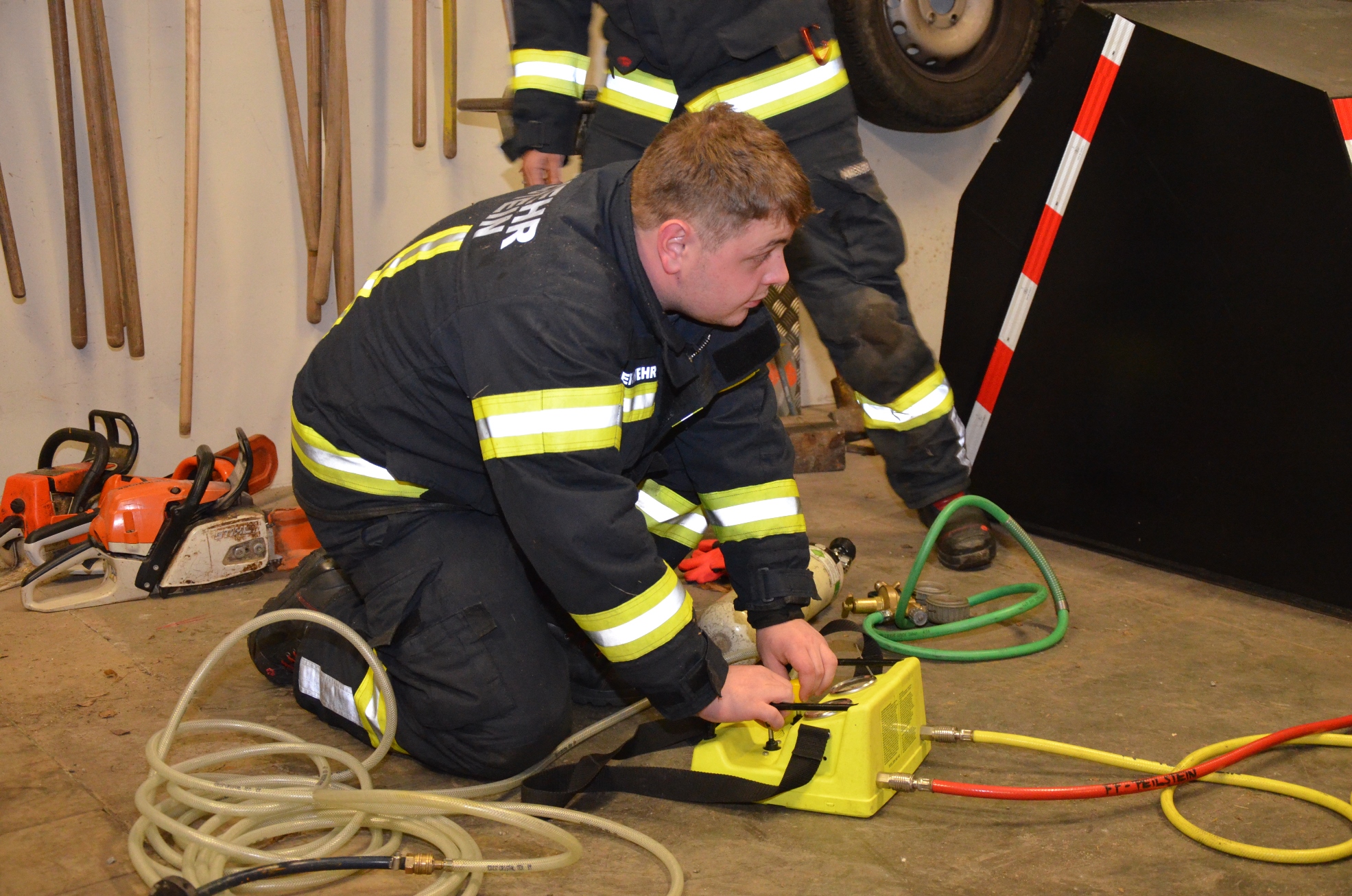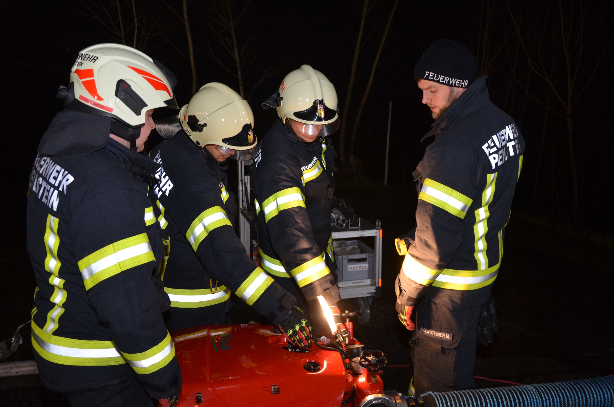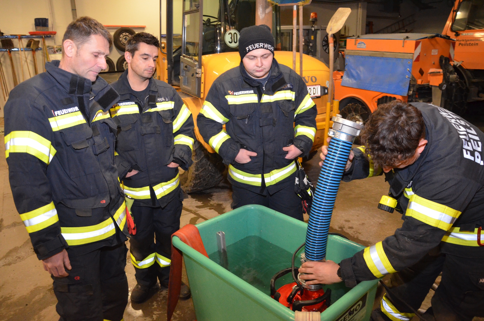 Bei der letzten Monatsübung im heurigen Jahr wurden in vier Stationen sämtliche in den Fahrzeugen befindlichen Geräte beübt. Angefangen von einer Standard Löschleitung mit der Tragkraftspritze über Atemschutz und Funk zum Hochleistungslüfter, den Hebekissen, der Tauchpumpe und Motorsäge bis zum Tanklöschwagen wurde das Wissen bei allen teilnehmenden Kameraden aufgefrischt.
