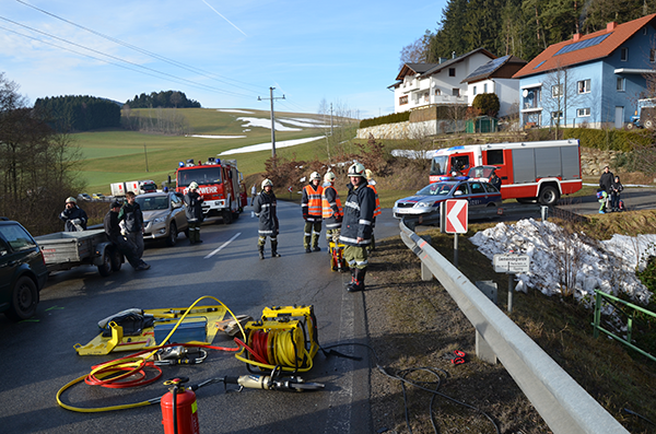 Zu einem Verkehrsunfall mit eingeklemmter Person rückten wir um die Mittagszeit mit 15 Mann aus. Dabei unterstützen wir die Feuerwehr Öpping mit einem zusätzlichen Bergungsgerät welches wir als Ersatz bereitstellten. Weiters wurde ein Lotse zur Absicherung der Unfallstelle bereitgestellt.