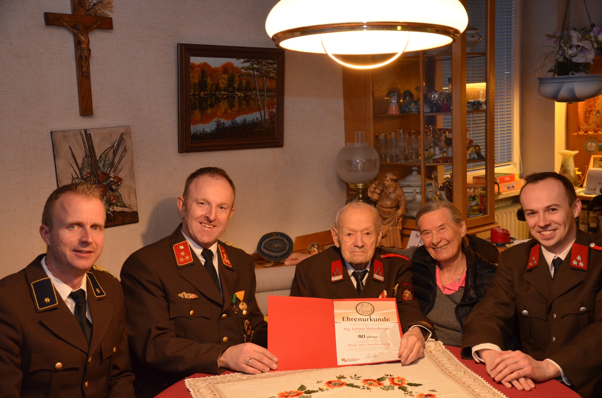Auch hier gab es eine Prämiere in den Reihen der FF Peilstein: Unser Kamerad Ing. Johann Hehenberger erhielt die Ehrenurkunde für 80 !!! Jahre als Mitglied der Freiwilligen Feuerwehr.